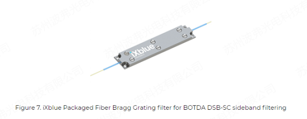 FBG边带滤波器:光纤布拉格光栅(FBG)可用作BOTDA系统的DSB-CS边带滤波器。IXC-FBG是一种光纤布拉格光栅,通过多年来的技术积累,iXblue可以提供高度定制的FBG,这些FBG可以放入特殊的封装外壳中以保证对环境的不敏感,用于去除BOTDA系统中不需要的DSB-CS边带。