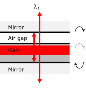 图2:带衬底反射镜、增益区、气隙和顶部反射镜的MEMS-VCSEL示意图。