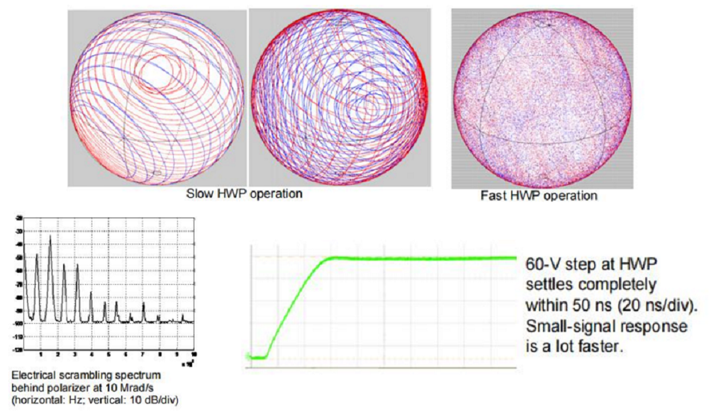 基于旋转速度可调的电光波片,超快无端光学偏振加扰速度高达 10000 krad/s(20000 krad/s,精度降低;更多根据要求提供)