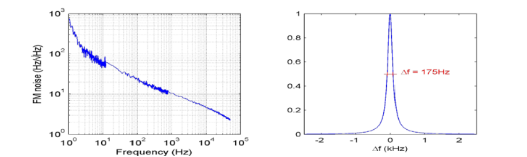 SlowLight™ 技术降低了光群速度,导致超低AM和FM噪声和创纪录的超窄瞬时<1Hz Lorentzian线宽和<200Hz 1/f线宽超过1ms!