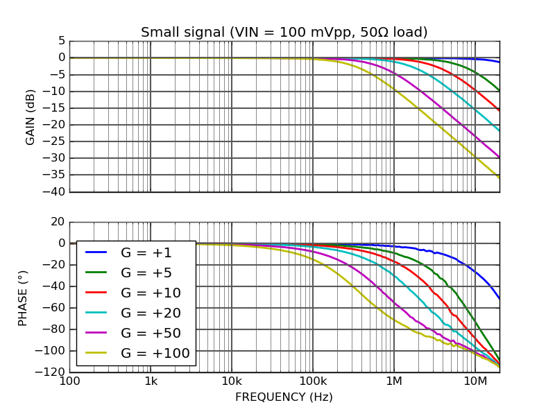 3 dB bandwidth (gain = 10) 2 MHz