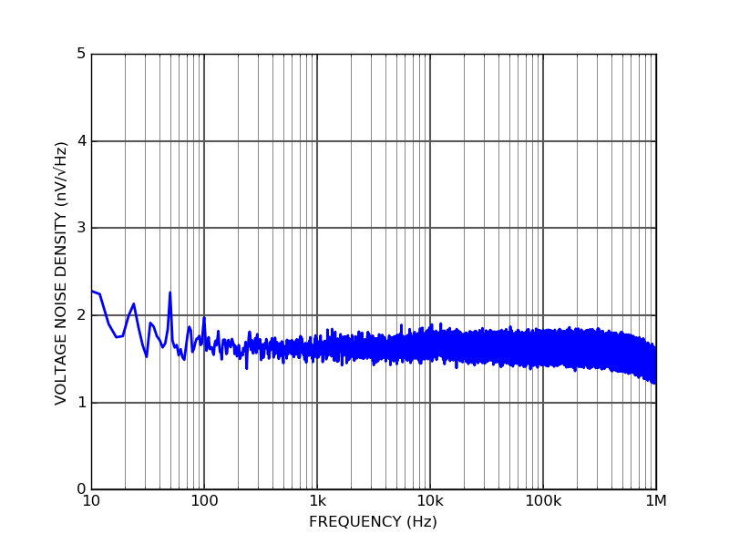 Input-referred voltage noise (1 kHz) < 3 nV/√Hz