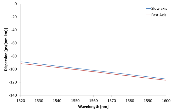 色散,慢轴@ 1550 nm |